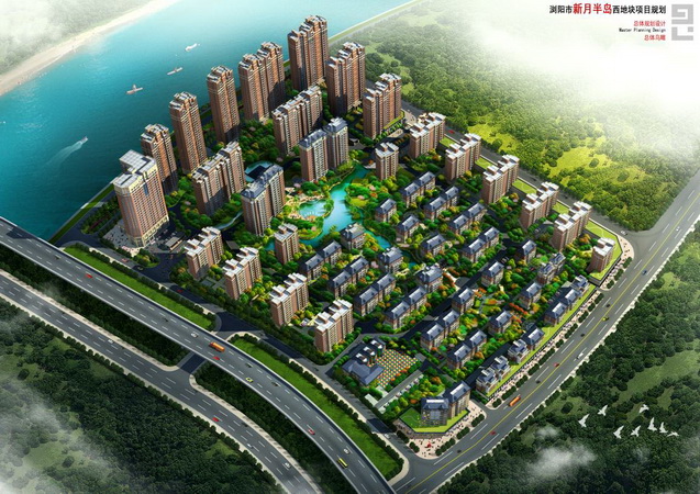 因此,新月半岛花园的整体规划全面超越浏阳已有的住宅开发标准,与英国欧思建筑师事务所丶建筑设计大师--魏春雨教授丶湖南大学建筑设计院等国内外顶尖设计资源展开合作,全面导入国内外先进的住宅设计理念。本项目的设计特点可以总结为:“一大中心,五大组团,七大创新体系”。