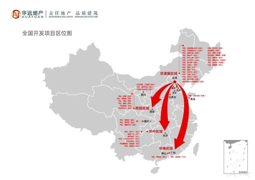 近年来,华远地产充分发挥自身灵活优势,在“规模与效益并举,产品与服务共进”的发展战略之下,积极拓展热点区域。目前已在京津冀区域、华中区域、西部区域、华南区域等地投资开发,企业综合开发实力强劲。