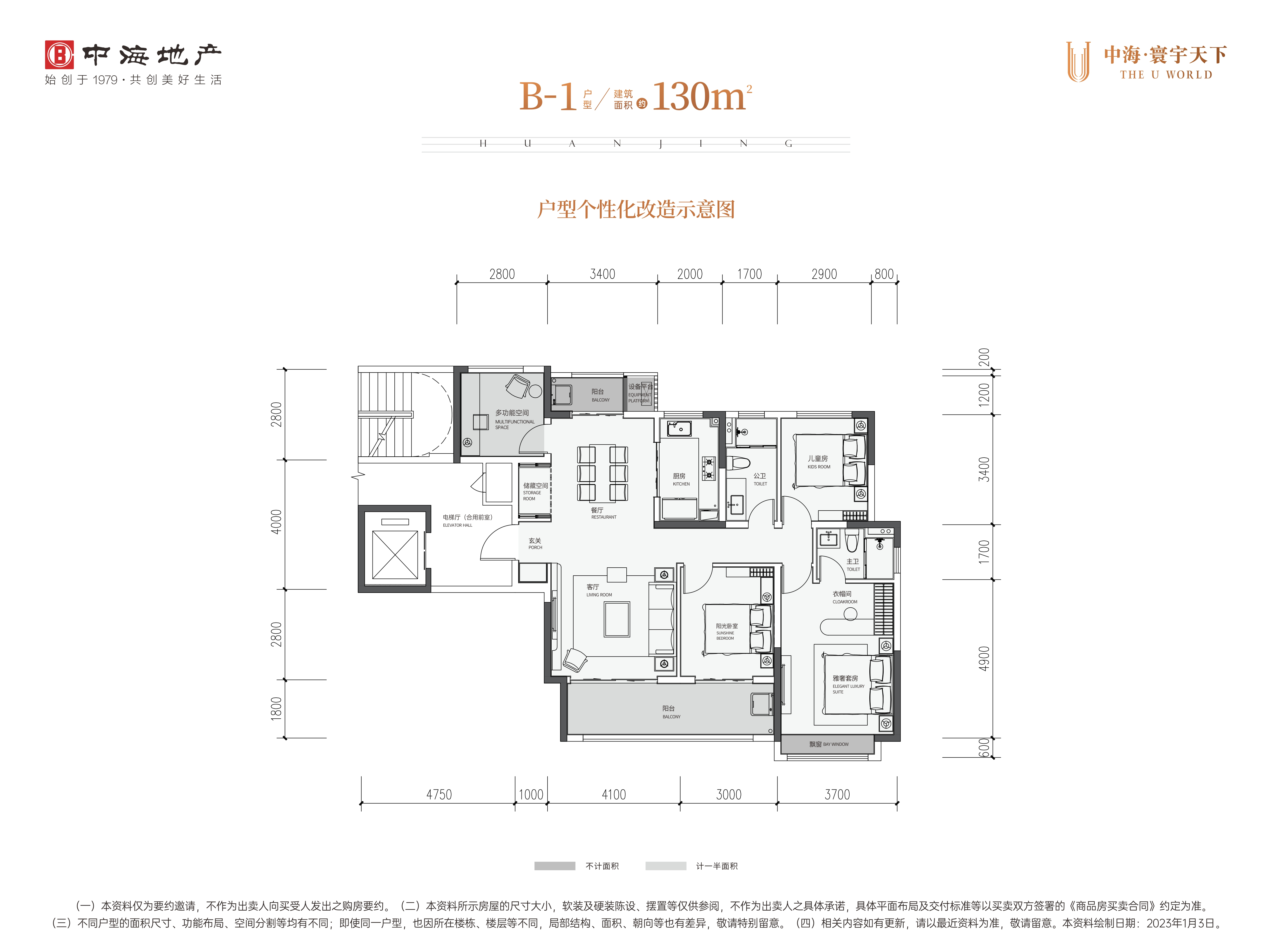 约130㎡3+1户型,南向全景采光,餐客双阳台一体,南北对流、通透,套间主卧,拥有步入式衣帽间、独立卫浴空间,对位菁英生活品质。