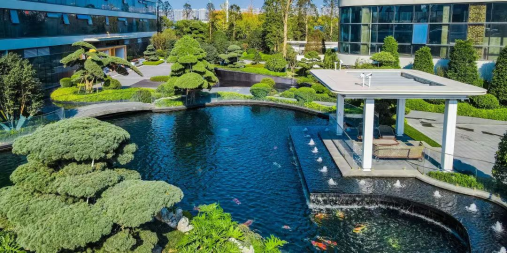 交付期间,T5、T6栋“钻石之帆”的全玻璃立面显得格外醒目,与湘江、福元路大桥辉映成景。走进小区内实景园林,更是一步一景。项目以东意西境造园手法为基石,斥资亿元引进五针松、罗汉松、金丝楠木等名贵树种,搭配约700㎡私家锦鲤池,呈现中西结合的现代国际化度假园景。