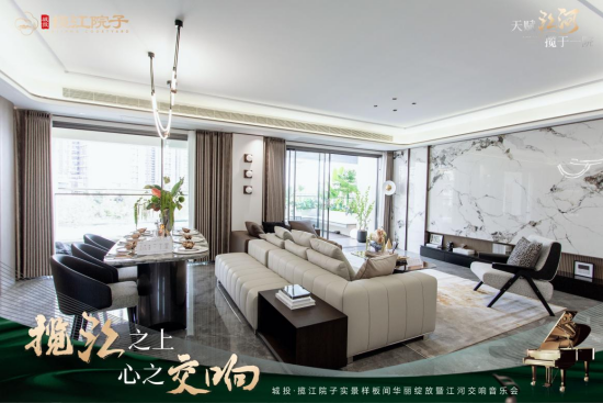 长沙楼市,江河为贵,12月16日,“揽江之上,心之交响”——城投·揽江院子美学样板间开放盛典暨江河音乐交响会盛大举行。千年江河文脉上,奏响经典天籁华章,各界精英翘楚齐聚,共同亲临鉴赏滨水人居的塔尖生活美学。